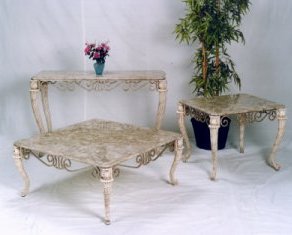 WROUGHT IRON FINISH: SPOTTED SILVER IRON FINISH AND ANTIQUE IVORY LEG FINISH