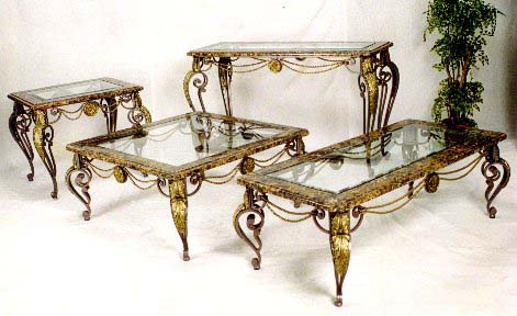 WROUGHT IRON FINISH: CHERRY GREY WITH GOLD MEDALLIONS.