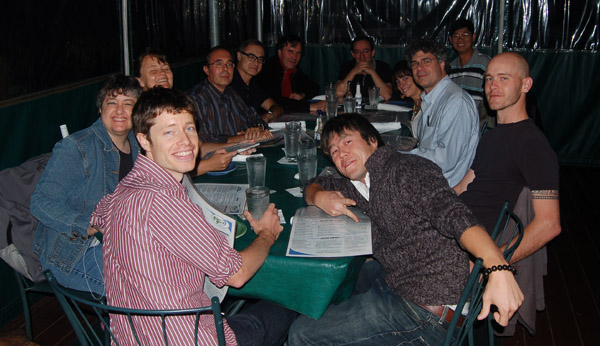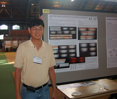 Went to Cornell early this morning to attend the oral on outer planets. There interesting talks on Jupiter's 3rd red spot. I had lunch with my group at a Japanese restaurant in College town. In the afternoon, I did my short talk on my poster. In the evening, our group (Phil, Mike, Xylar and me) together with Agustin Sanchez-Lavega's group and some friends went out for a dinner at the Boathouse Grill. The seafood was great and we spent the night talking about atmospheres!