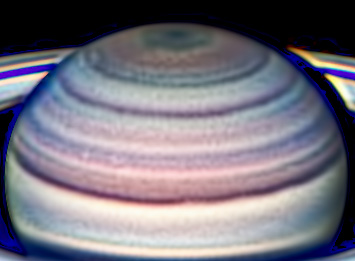 April 21, 2020 Transparency was poor today due to haze and some clouds. Seeing was good though. Saturn is quiet in this region. The Polar Hexagon and the Polar Spot are obvious.
