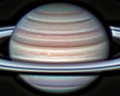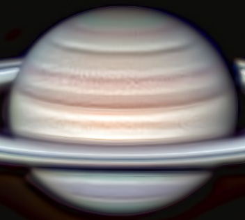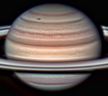 I could only use 1 set of RGB! Iapetus is located basically at the CM on the lower part of the ring. It was only visible in the Red filter and blurry in IR. I only did contrast enhancement because sharpening was too noisy.